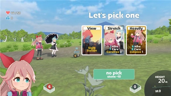 《山札二合处》是一款巧妙融合登山旅行、卡牌策略与Roguelike随机事件的慢节奏休闲游戏。在游戏中,玩家将化身向导,借助“行走”“休息”“使用装备”等行动卡牌的组合,为两位少女规划每一段登山路径。游戏以真实的山川地貌为背景,同时融入了当地的风物特色与文化底蕴。每次登山过程中,玩家都会遇到随机的天气转变、突发状况以及新路径的探索,不存在两次完全一致的旅程,这就需要玩家依据实时情况灵活调整策略,最终带领少女们成功登上山顶。