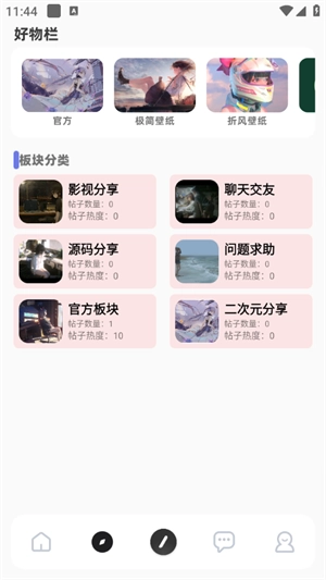 在分类页面中,你能够看到壁纸分享、聊天交友以及源码分享这些内容。