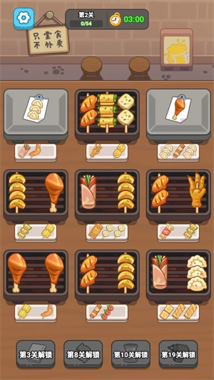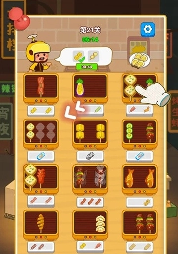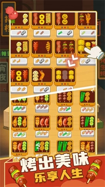 玩家能够借助指尖的操作,把各类诱人的烤串进行完美摆盘,感受烧烤摊的快节奏挑战。