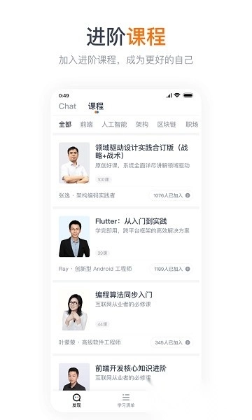 GitChat ,gitchat 是一个面向开发者的互动交流平台,汇聚了大量行业资深人士和技术爱好者。在这里,你能够随时向他们咨询技术难题,分享个人项目经验,和同行共同探讨前沿技术趋势。通过持续的交流与学习,不断提升自身技能水平,拓宽专业视野。