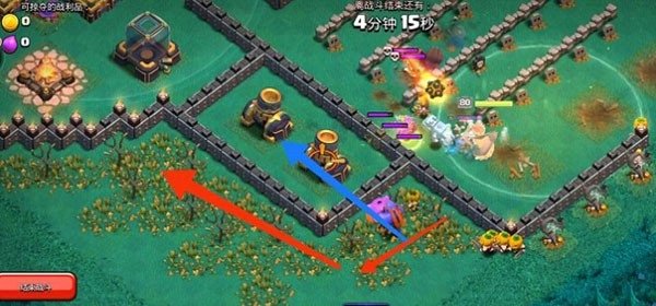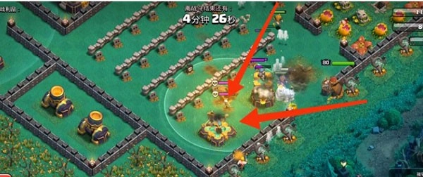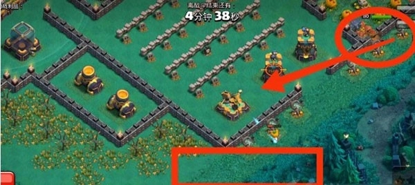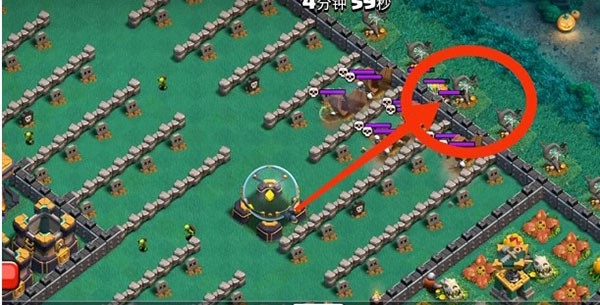 右侧红圈区域内有两名女武神,她们会自动破坏墙体,墙体被破坏后便会转向攻击圣水罐。