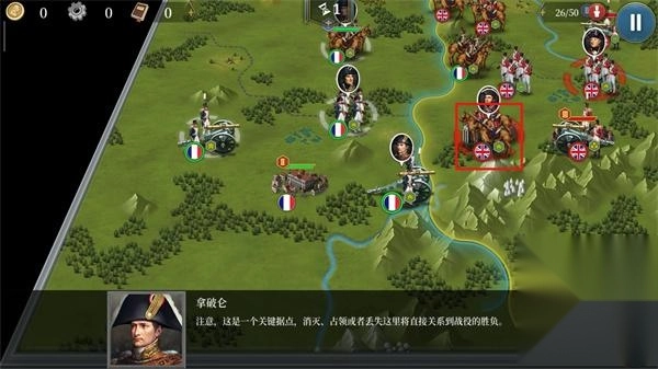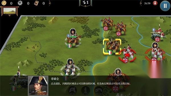 点击部队周围闪烁的区域,就代表那里是可以移动的范围;而带有红色标记的目标,则意味着可以对其发起攻击。