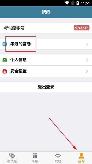 1、打开软件后,点击底部导航栏的“我的”选项,进入个人中心页面,接着在页面中找到并点击“考过的答卷”,即可查看相关内容。