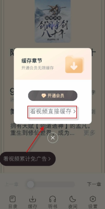 3、可以选择观看视频进行缓存全部章节