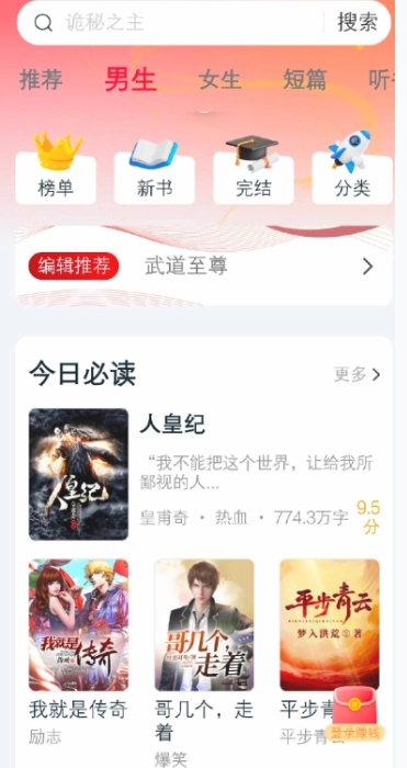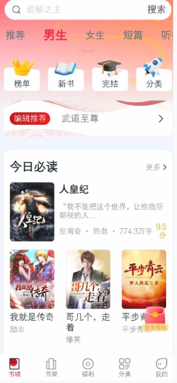 1、安装并打开顶点趣阁后,在首页中有众多小说推荐