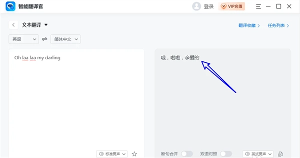 最后在左侧输入英文后,右侧会直接显示对应的中文,翻译操作即可完成。