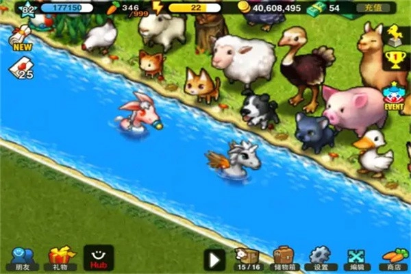 3、也可以在马场疏通河道,可以看到各类动物的互动。