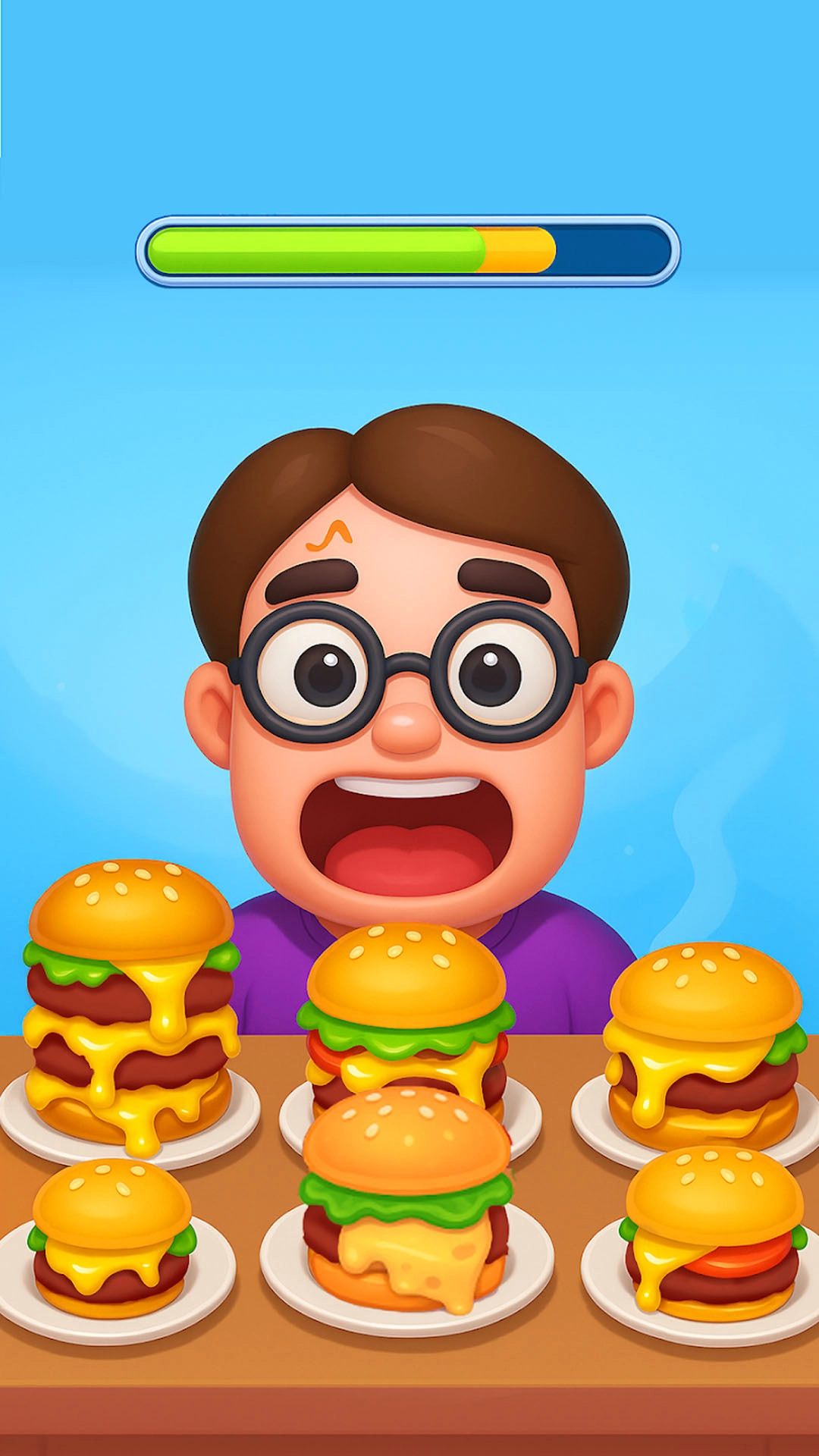 围绕汉堡制作这一核心主题,打造一个满是童趣的多彩游戏天地,让玩家在制作汉堡的过程中,沉浸于轻松愉悦的氛围里。