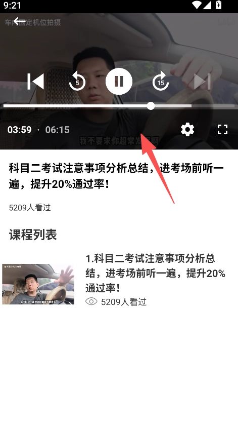 具备视频播放能力,可挑选对应的学习视频,进入播放界面观看驾考技巧的详细讲解。