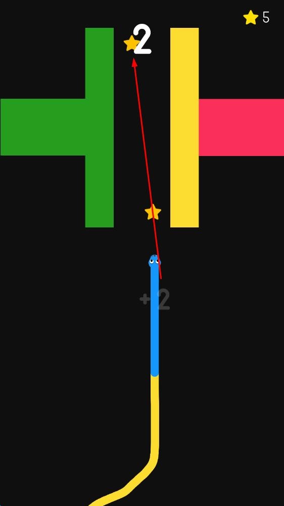 进入游戏后,玩家将操控小蛇开启一段冒险之旅。首要目标是引导小蛇在地图中灵活穿梭,吃掉和自己身体颜色一致的小星星,同时避开其他颜色的障碍物,通过这样的方式让小蛇慢慢变长。