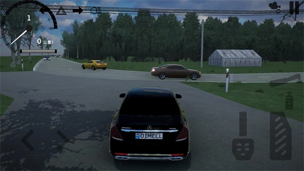进入地图后,左侧用于控制车辆转向,右侧负责油门与刹车的操作,左上角则显示当前车辆的速度。