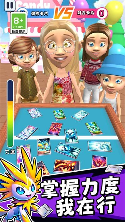 拍卡时力度把控精准,就能轻松掀翻对手的卡片,秀出你的拿手技巧。