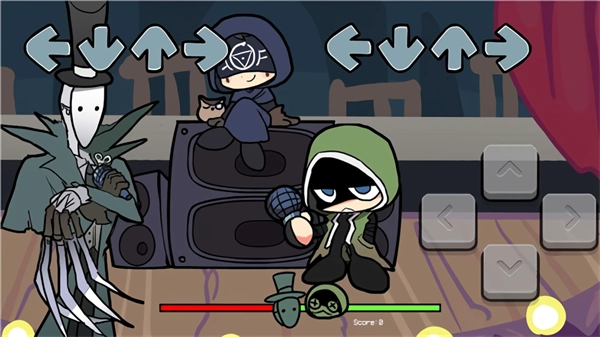 4、讲述主角在周五夜晚遭遇的事故。想要和红衣小妹妹在一起竟是如此艰难,总有人想要拆散这对CP。你需要的做就是拿起手中的麦克风,迎战扑面而来的敌人,这几个箭头可以控制想对应的按键。