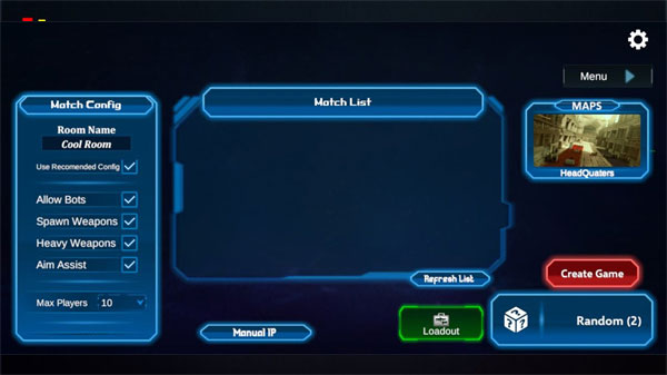 2、左侧可以设置匹配的人数以及武器等;