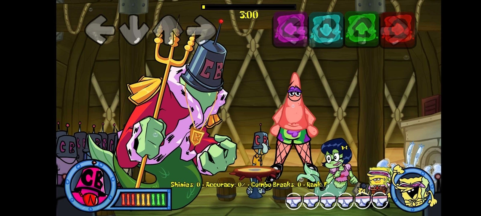 FNF海绵宝宝比奇堡模组是一款深度融合经典海绵宝宝IP与元素的游戏,休闲玩法与闯关体验都惊喜满满,海底比奇堡的场景也会在这里呈现,为玩家完美还原了海绵宝宝的世界观。你可以体验丰富的任务与冒险对决玩法,开启别具一格的音乐挑战,同时感受海绵宝宝独有的魅力与快乐。游戏还包含诸多创新舞蹈动作,喜欢FNF海绵宝宝比奇堡模组的玩家千万别错过!