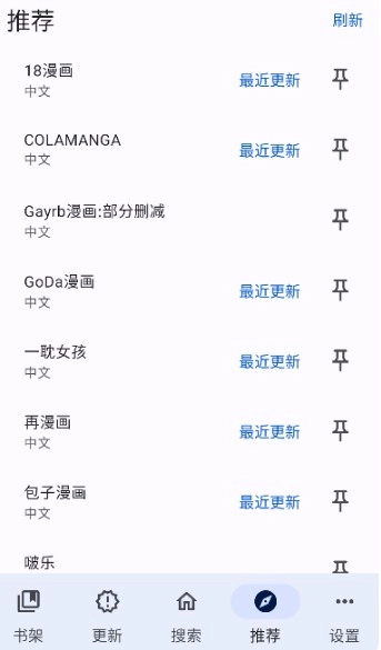 3、点击底部【推荐】功能栏,丰富漫画阅读源