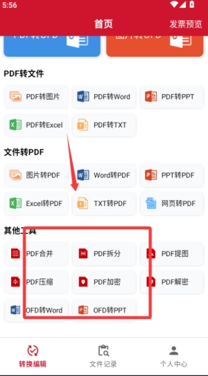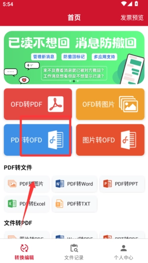 1、打开应用点击转换功能,从手机存储中选择需要转换的ofd格式文件,支持多选批量操作。