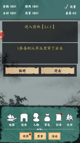 4、当我们踏入密林之中,毒蛇突然出现时,我们有躲避和迎击这两种选择