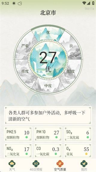 包含了详细的空气质量情况,还有贴心的生活指导;