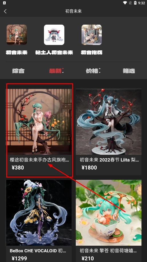 点击【初音未来-分类标签】,即可进入初音未来相关商品页面。