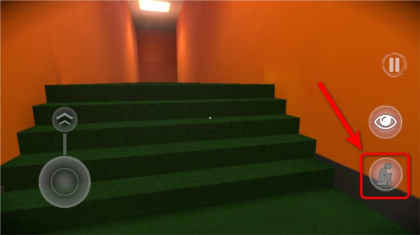 还有下蹲按键,点击它能让玩家蹲下,从而躲避怪物的观察。