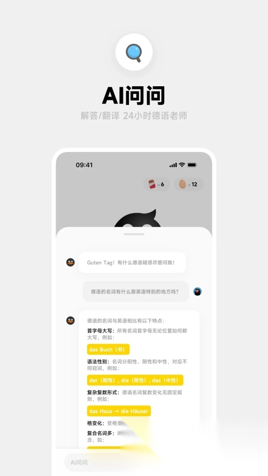 • 上线「AI问问(beta)」功能,可随时为你解答德语学习中的疑问