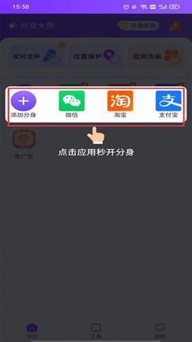 分身大师安卓版是一款功能强大的应用克隆工具,用户可借助它轻松实现QQ、派派、陌陌、淘宝、闲鱼及各类游戏等应用的免费双开与无限多开。该软件采用虚拟化技术启动应用分身,保障了使用过程的安全性。通过它,用户能让多个账号同时在线,既实现工作与生活的清晰区隔,又能享受娱乐和游戏的双重乐趣。这款手机分身助手凭借其稳定、安全、流畅的特点广受认可,为用户的移动设备拓展了更多可能性。