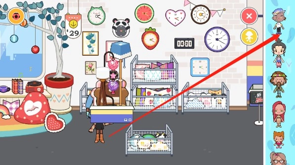 挑选好家具物品后,点击页面右上角的人物功能按钮,从中选择一位人物。