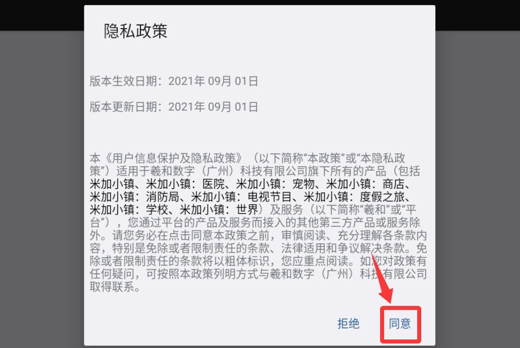 1、打开游戏后会提示隐私,点击隐私政策里的同意并继续。