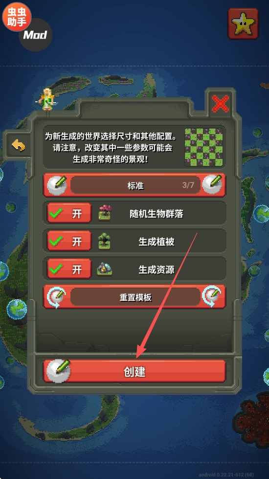 按照自己的玩法设置世界,然后点击创建