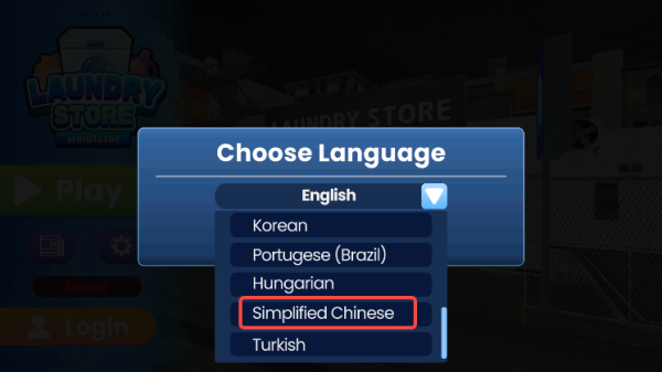 1、进入游戏,在choose language界面找到下拉三角;