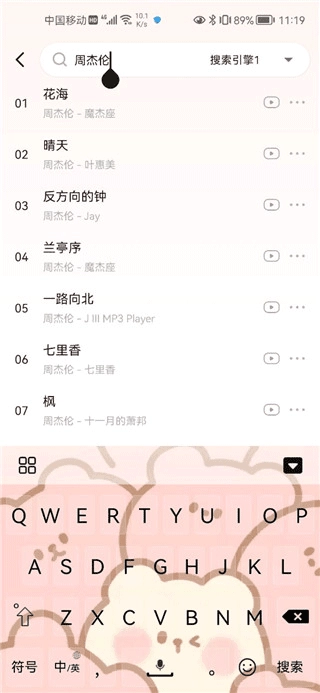 点击上方搜索你想听的歌以及歌手名字;