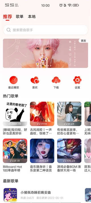 还可以点击最新歌单或者热门歌单;