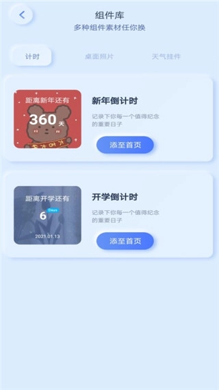 魔力小组件安卓版包含天气预报、倒计时、相册等多种类型的小组件。