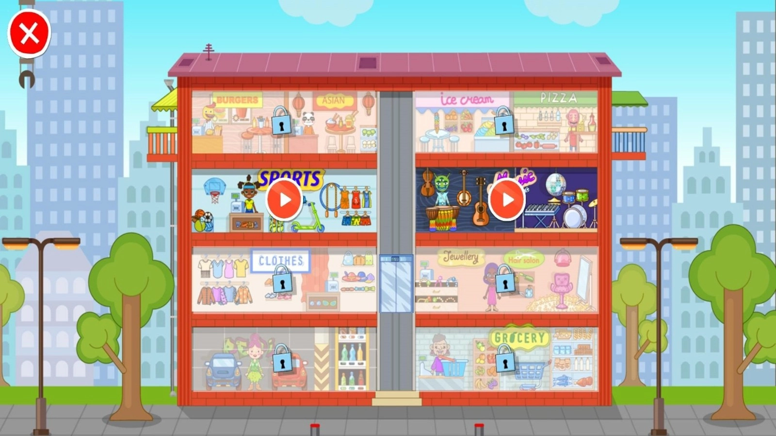 2、如下图所示,商场中拥有多个可以解锁的房间可以进入探索玩耍。选择你喜欢的房间去探索吧