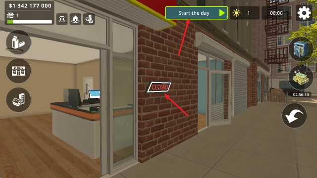 4、之后到门口点击一下“close”,就能开启一天的经营了