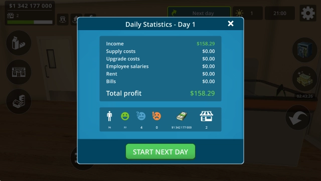 8、待一天的经营结束后,就可以去结算你的总收入了