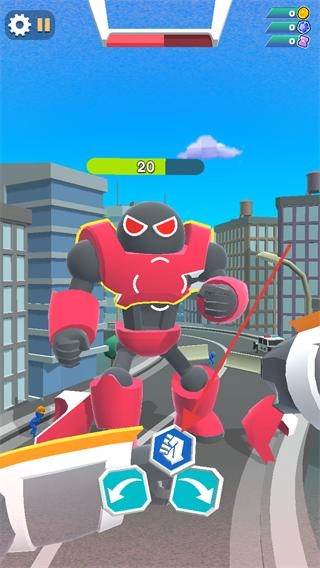 2、面对着敌方机甲,点击或长按下方拳头按键进行蓄力瞄准攻击。