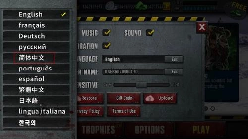 完成新手教程后,回到游戏主菜单界面,点击“OPTIONS”,再点击“Endlish”右侧的“Edit”按钮,就能切换成中文了。