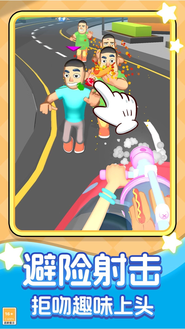 一路上粉丝数量不少,得用发射器投射食物去阻挡那些狂热粉丝的步伐,绝对不能让他们靠近你。