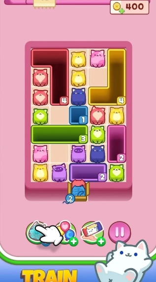 2、萌趣猫咪方块,玩家得给猫咪规划好行进路线,这样才能更顺利地移动猫咪。