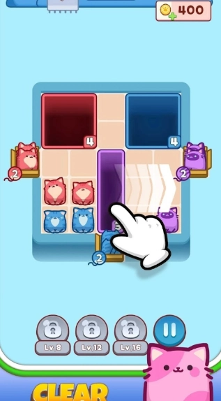2、你可以亲自挑战关卡,满足特定条件后,就能收集到各式各样的猫咪。