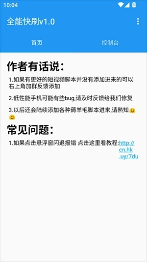 全能快刷最新版是一款高效智能的脚本辅助工具,操作管理便捷,支持直接在软件内开启悬浮窗功能,方便后续使用,让刷视频更轻松简单。此外,软件提供丰富的脚本功能供用户体验,服务简单有趣,即使未运行脚本时也能保持安全稳定的状态。各类脚本参数均可灵活调整,操作无难度,能帮助用户自动完成刷视频任务。感兴趣的用户欢迎前往52pkvr体验!