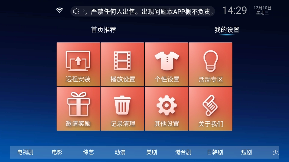 1、软件首页的下方有电视剧、电影、综艺等分类。