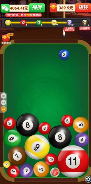 所有台球都能持续叠加,不过得是等级不同的台球才行,合成的次数越多,得到的台球数量也就越多。