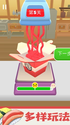 游戏里准备了辣椒、榴莲果、鱼子酱等各式各样的食材供玩家挑选,方便大家尽情施展创意来制作寿司。