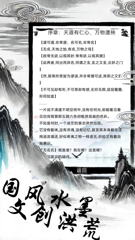 《洪荒亘古录》是一款极具创意的文字修仙类游戏,凭借独特的叙事方式与随机机制收获了众多玩家的青睐。玩家将踏入神秘的修仙世界,通过一系列选择与决策逐步提升自身修为和各项能力。游戏内设计了丰富多样的剧情脉络,引导玩家探索各类广袤无垠的仙界秘境。每一次抉择都可能让玩家走向截然不同的结局,对玩家的智慧与判断力构成挑战。