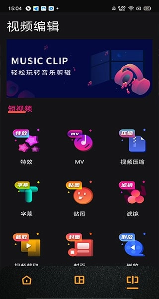 特效、MV、视频压缩、字幕、贴图、滤镜、视频截取、封面、倒放、变速等功能。