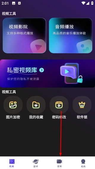 进入视频页面后,点击底部的【剪辑】选项,即可进入视频工具的功能选择页面。