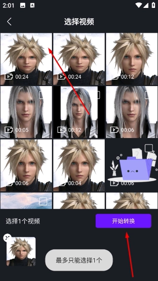 在选择视频的页面,先勾选好目标视频,接着点击“开始转换”按钮,就能进入压缩设置页面了。